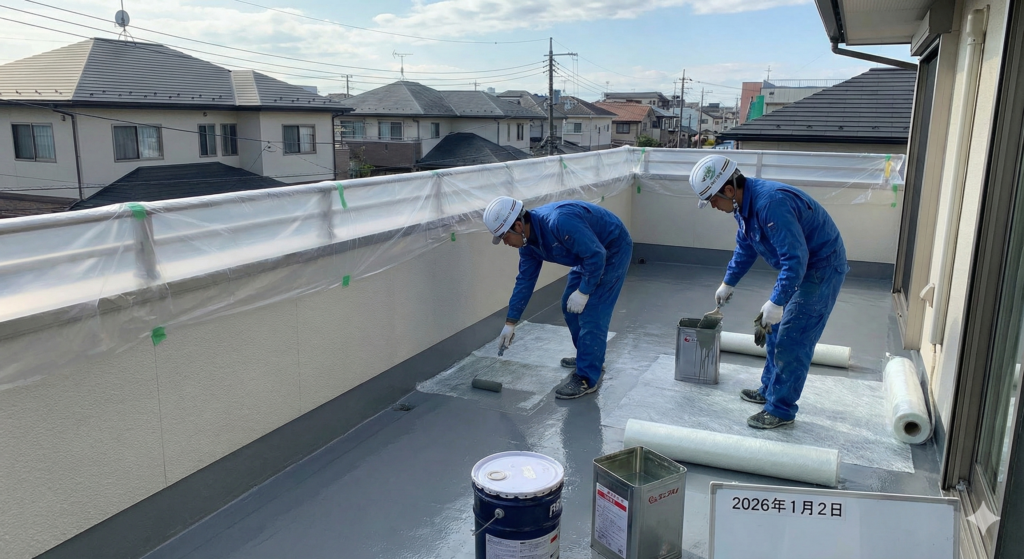 通常、ベランダの床には雨漏りを防ぐための防水処理が施されています。この防水層は紫外線や雨風にさらされるため、定期的なメンテナンスが欠かせません。もし放置すると、亀裂から雨水が入って家本体を腐らせてしまう原因になります。